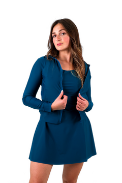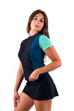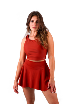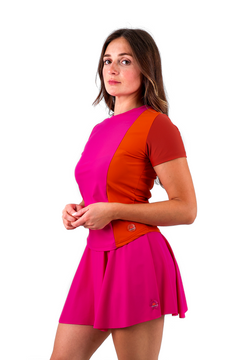 Mantém a simplicidade com este conjunto de top e saia desenvolvido para padel, que podes usar dentro e fora do campo.